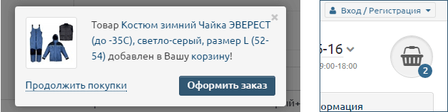 2. После этого можете продолжить выбирать товары, либо перейти к оформлению заказа нажав кнопку "Оформить заказ". Также на экран оформления заказа можно перейти нажав на изображение корзины в правом верхнем углу сайта: